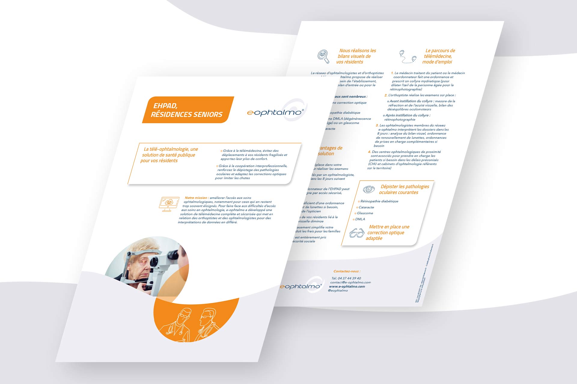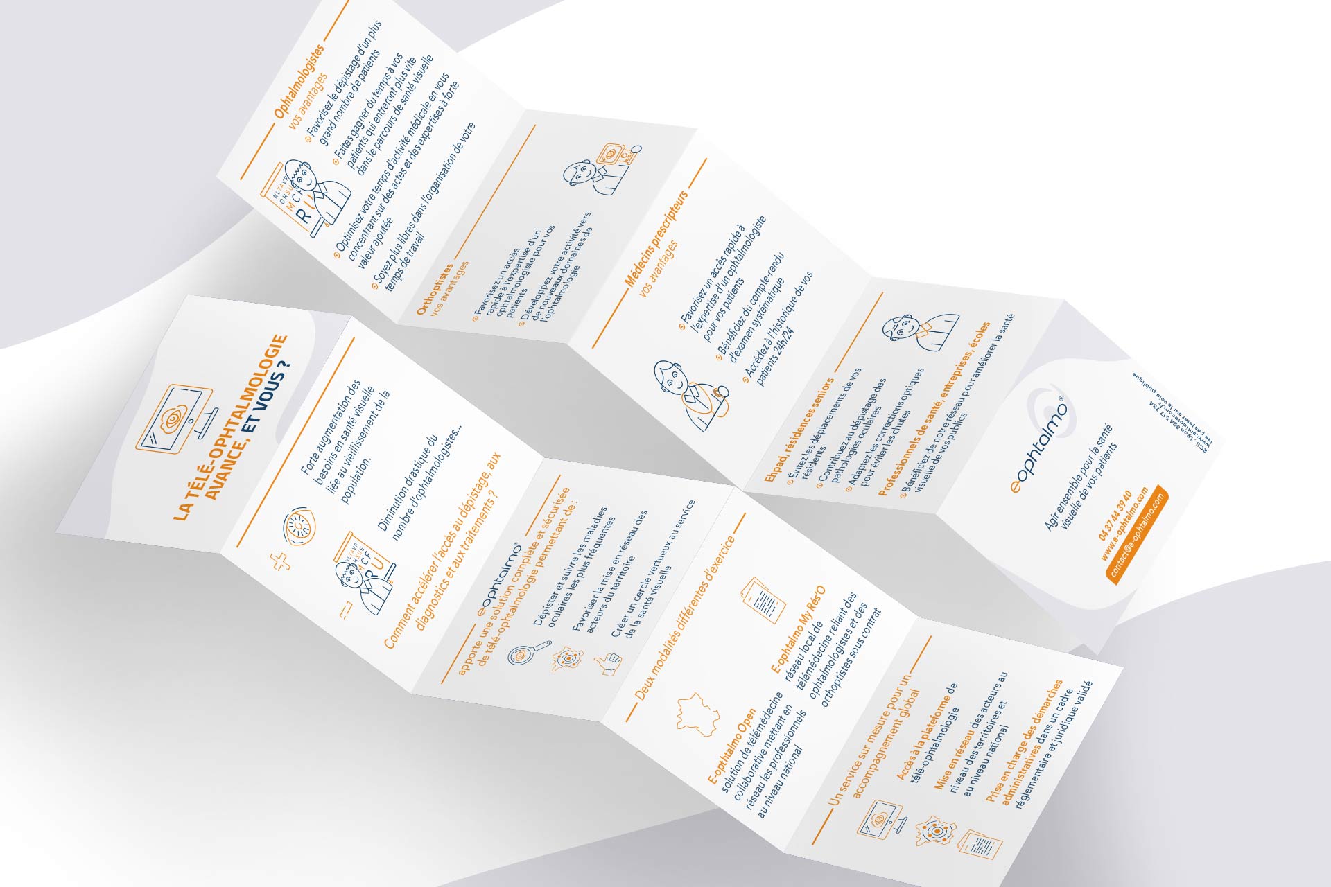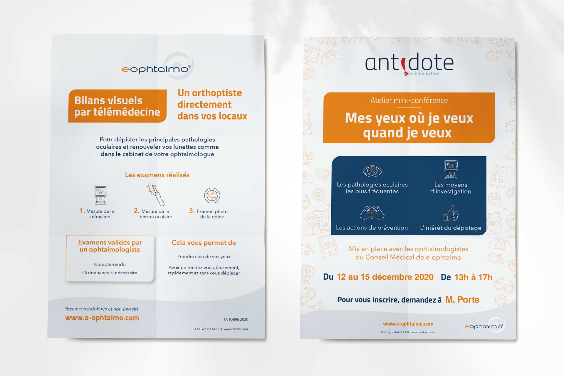 Au sein de l'agence Antidote Communication, j’ai eu l'occasion de réaliser la refonte de la charte graphique pour la société e-ophtalmo, un réseau de télémédecine. J'ai été chargée de créer tous leurs supports de communications prints ainsi que numériques avec notamment une présentation PowerPoint ou la maquette pour leur site web.