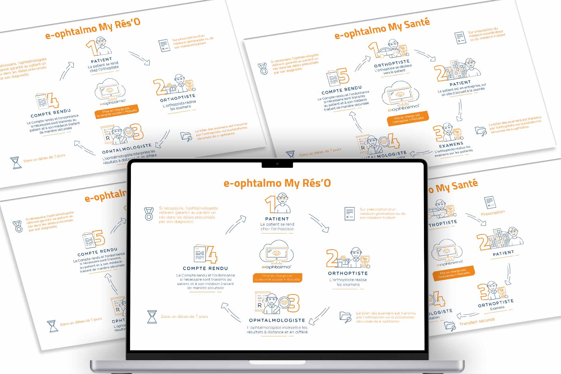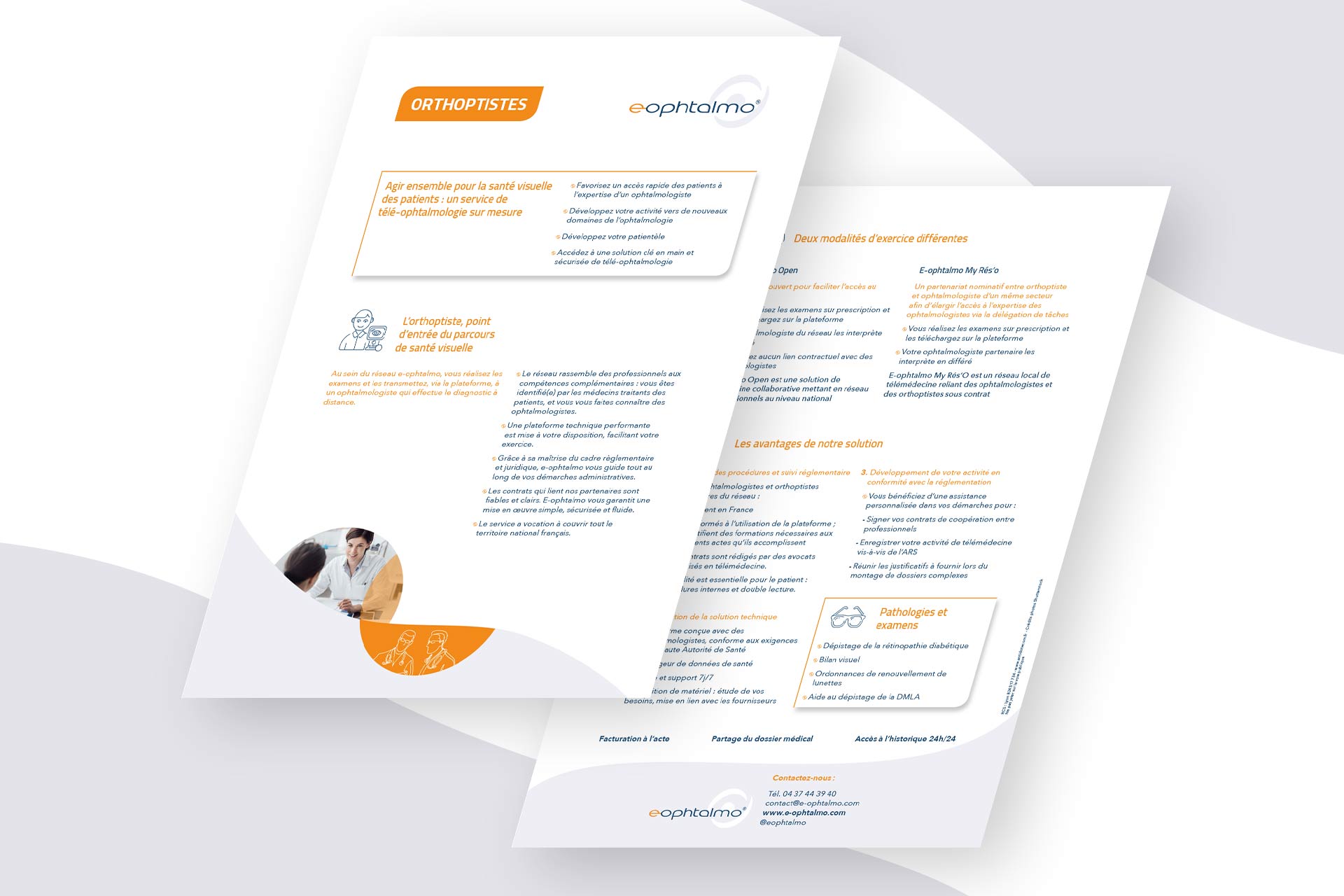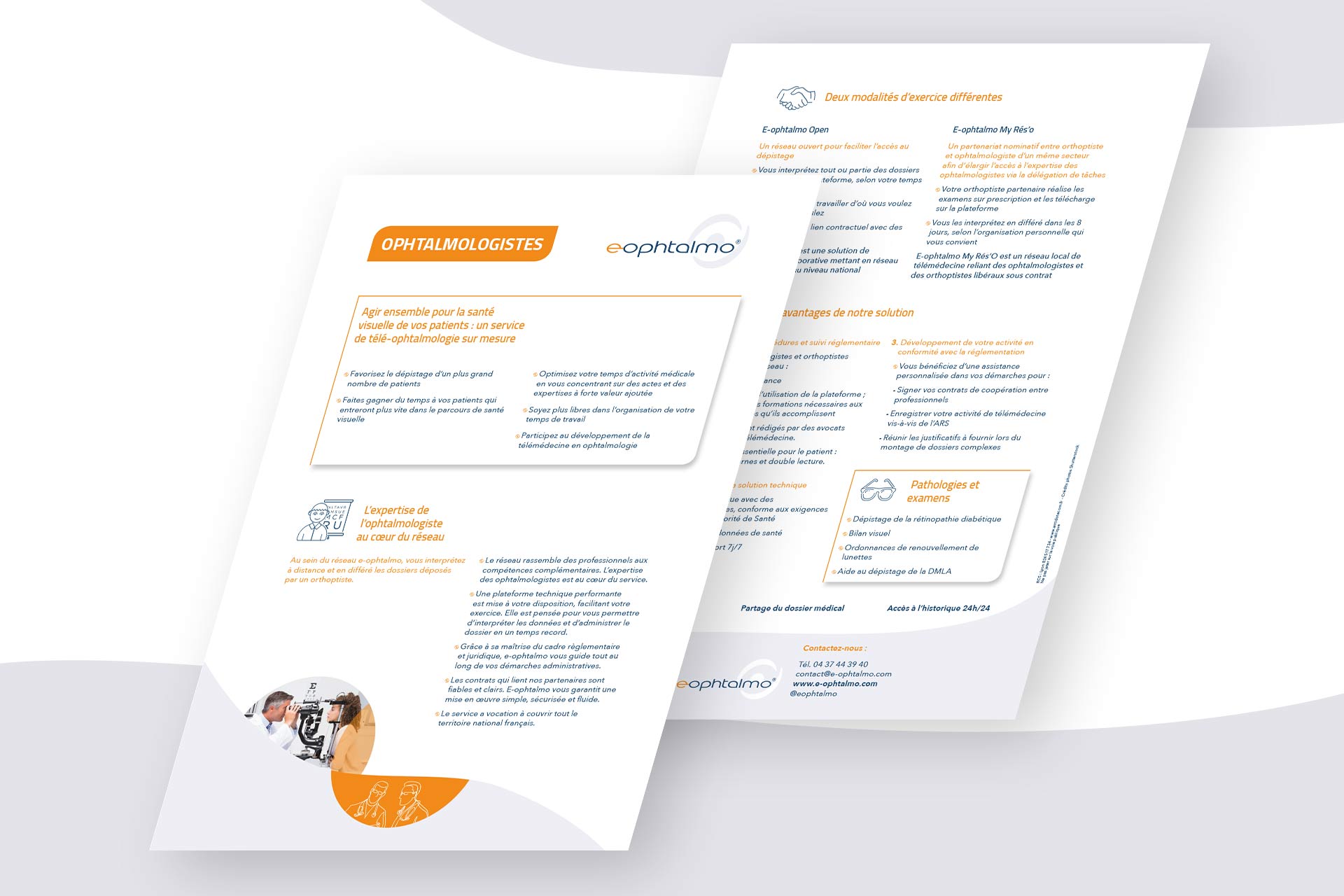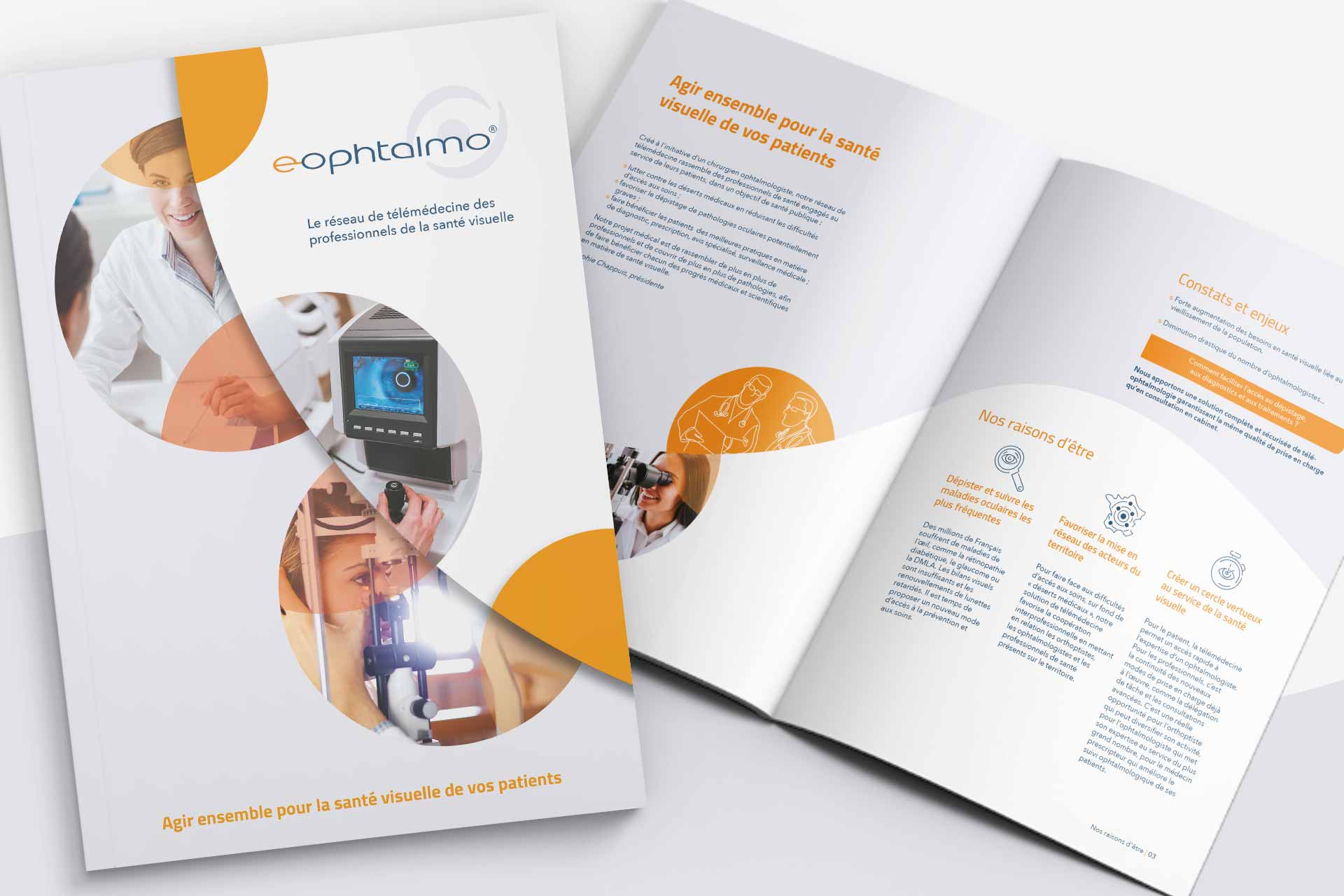 Au sein de l'agence Antidote Communication, j’ai eu l'occasion de réaliser la refonte de la charte graphique pour la société e-ophtalmo, un réseau de télémédecine. J'ai été chargée de créer tous leurs supports de communications prints ainsi que numériques avec notamment une présentation PowerPoint ou la maquette pour leur site web.